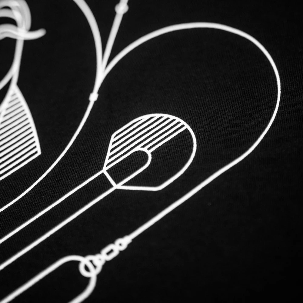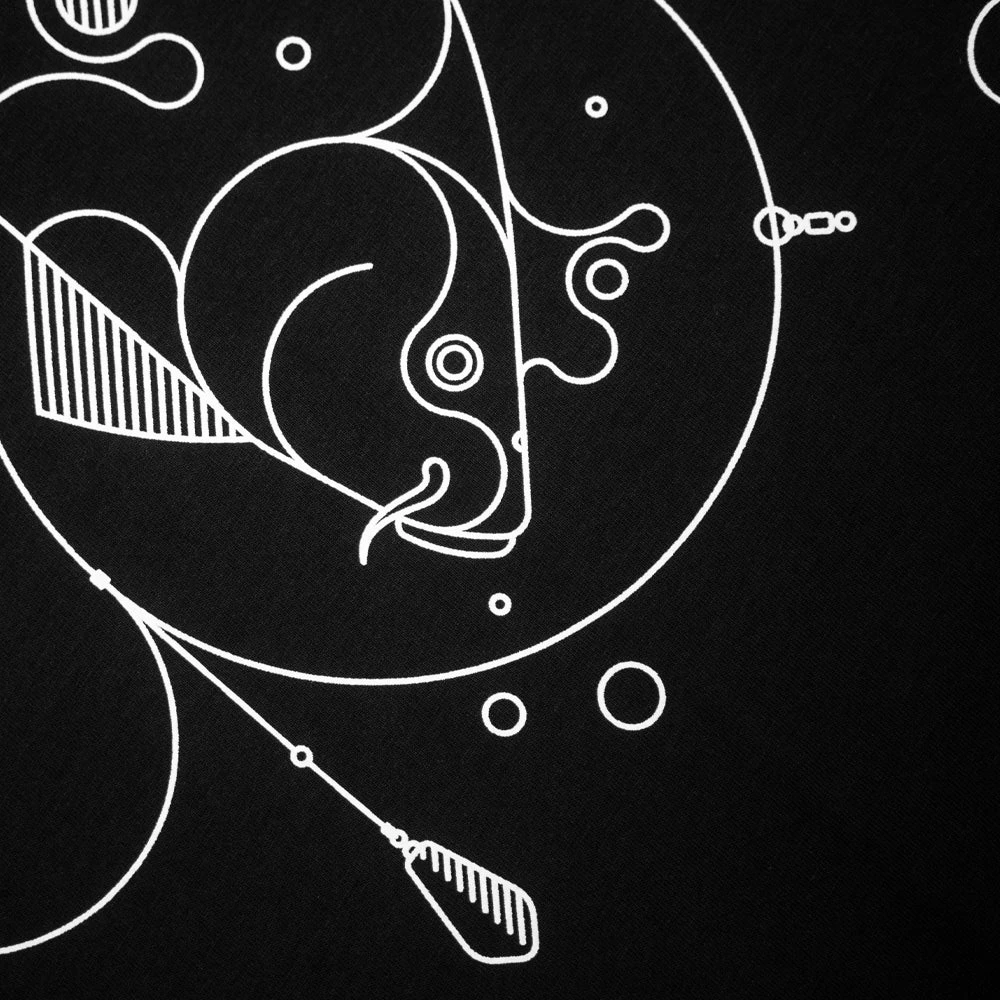 King Carp. A visual play on words inspired by traditional playing card design. Monochrome chest print and intricate “King Carp” backpiece printed on our super soft 140gsm, 100% cotton fabric with side tab detailing.