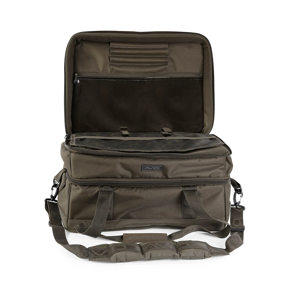 The Lowdown Carryall has been designed to fit compactly under a bedchair. Unlike other carryalls on the market, the lowdown carryall has a central zip which allows for easy access and storage under a bedchair. The lowdown carryall is the perfect choice for anglers who use compact shelters or simply enjoy keeping their tackle bags organised and stored away under their bed’s. In keeping with the rest of the A-Spec range, the lowdown carryall also features a hard case lid to store bite alarms and banksticks.