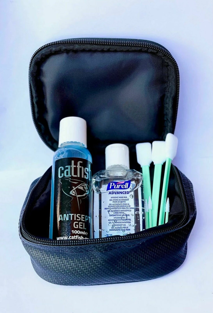 - An essential item for every catfish angler. The New Fish Care Kit comprises of 100ml Antiseptic gel, 100ml hand sanitiser and a pack of swabs for applying the gel to the fish, all supplied in the Catfish-Pro rig pouch.Catfish-Pro has linked up with industry leading manufacturers Steri-7 (Guard Pro) to produce an antiseptic gel. Unlike some gels which are clear and are hard to see when they have been applied, this gel has a light blue colour. In a smart handy 100ml bottle with a snap open lid it, is easily opened with a single hand.This is a specific formula for use on fish.