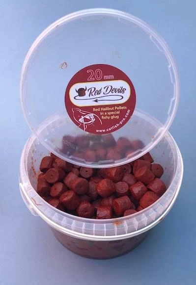 A special Redfish halibut glugged pellets to use as hookbaits for catfish. The extra attraction of the glug helps make the fish take your bait first!