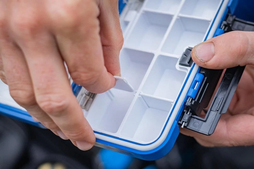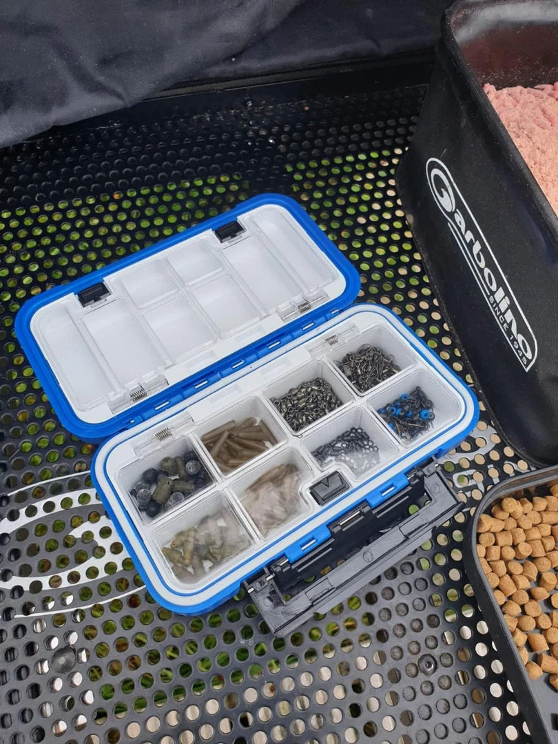 A brand new range of handy multi-accesory boxes with click close flip lids. A water proof seal makes sure that none of your swivels and other accessories rust. These fantastic boxes feature movable dividers so you can taylor the compartments to suit your needs. Make’s organising those small accessories so easy.
