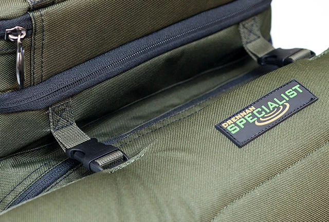 The bag also features a sculpted back and padded shoulder strap for extra comfort. It also has two clips which are used to securely attach the Specialist Compact Unhooking Mat. The two extendable carry straps on the top of the bag can be used to hold extra items of tackle/clothing.