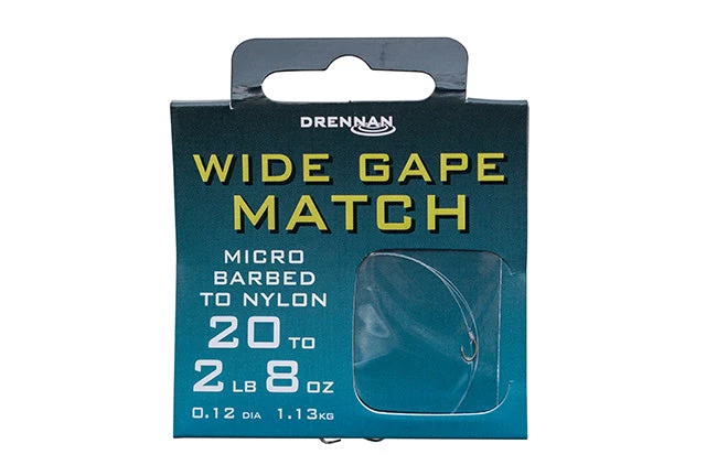 Wide Gape Match Hooks To Nylon features a wide crystal bend and have an inclined point which helps you to lose less fish.