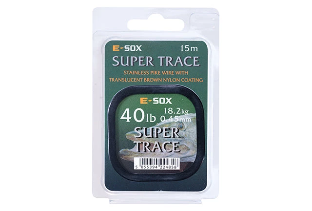 E-Sox Super Trace Pike Wire consists of our stainless steel Super 7 wire with a translucent brown nylon coating.