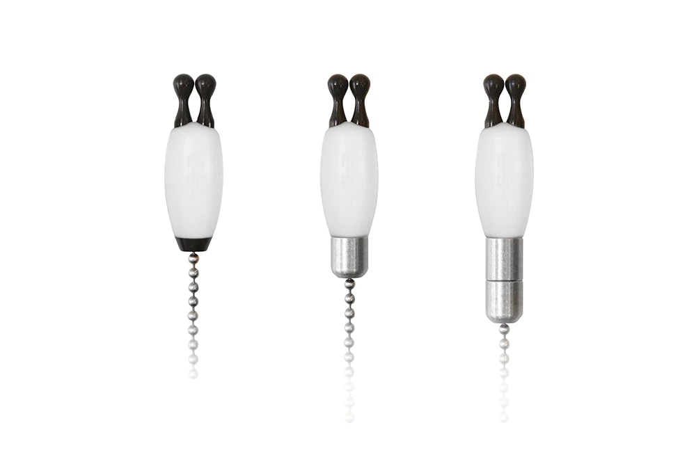 The interchangeable line clips simply allow the bobbin to be fished running on the line with the ball clips or gripping the line ‘Elstow style’ with the grip clips. The 3″ ball chain is best suited to this setup, with the bobbin fished on a short drop near the bite alarm.