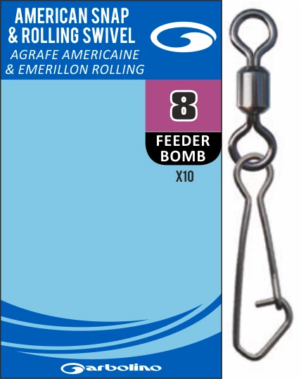 Strong and durable quality super smooth rotating swivel with american snap. Ideal for all feeder, bomb and even waggler fishing.