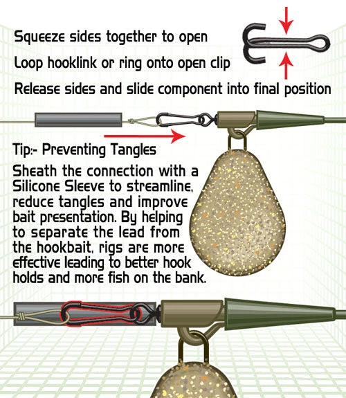 Perfect for the quick attachment of a multitude of end tackle components (eg. hooklinks, leads, feeders, marker floats, lures, etc.)