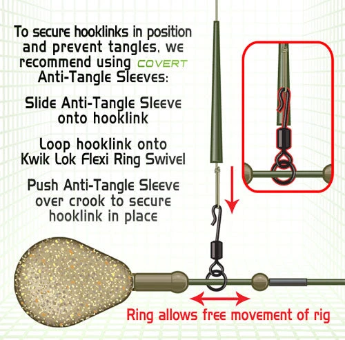 - The Flexi-Ring design allows pivoting and free rotation of hooklink, helping to prevent tangles during the cast.