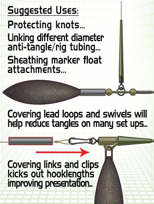 - Manufactured from a flexible silicone compound, they stretch over all types of swivels, clips and links to help disguise your end tackle keeping your rigs inconspicuous and tangle free.