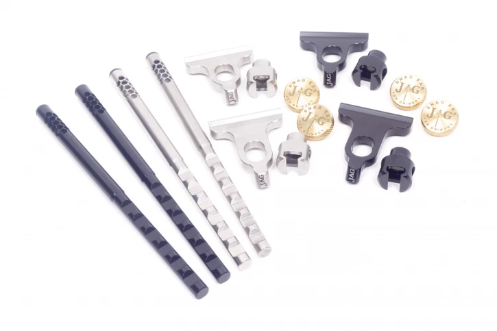 The base plates are available in two sizes, small and large. The small base plate is compatible with small alarms like Nevilles and ATTs, the large is compatible with bigger alarms like the Delkim or NTXR. The base plates have been milled in house by our skilled engineers. The base plate includes the fitment on the rear which the snag ear attaches on to as well as a 2BA thread on the front for you to screw in your indicators. To finish off the base plate, they are laser etched with JAG once again.