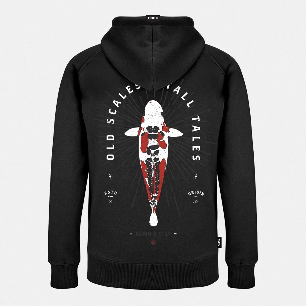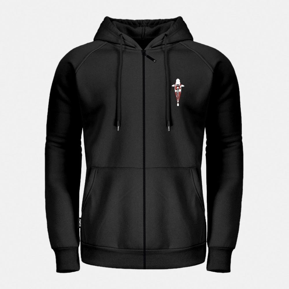 Intricate 2 colour, tattoo-inspired Koi chest pocket print, large 3 colour back piece on our super soft and warm 320gsm fabric with front zip up and pockets.