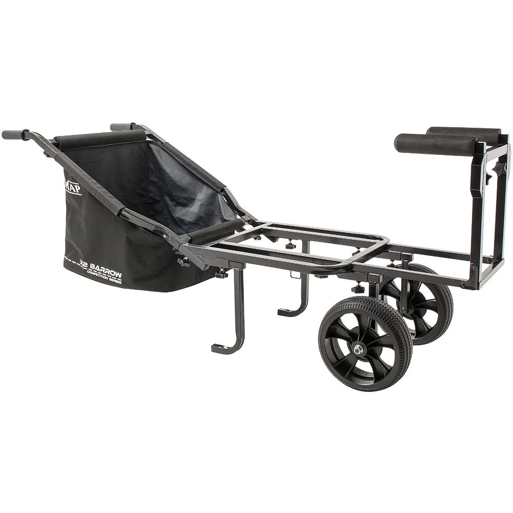 The X2 barrow not only features an extending main frame that allows extra storage, but also features an optional wheel configuration allowing the barrow to be transformed into an all-terrain barrow. Supplied with double brace handle, rear storage bag and protective box support arms.