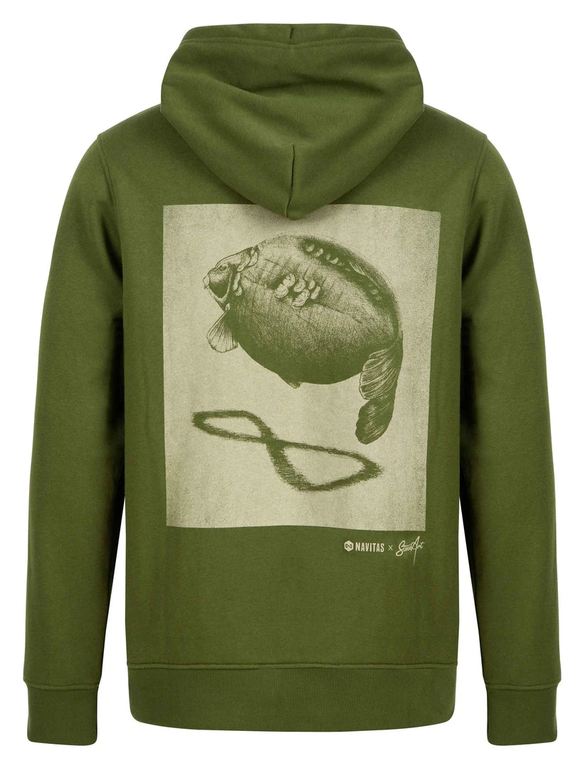 Taking inspiration from Stannart’s original artworks, Craig Stannard has designed this limited edition Shadow print just for us at Navitas Outdoors featuring a giant carp hovering over our Nfinity logo shadow. This season we have upgraded the fabric, increasing the thickness and longevity of the hoody
