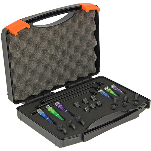 A complete adaptable indicator set designed to be used in any carp fishing situation. The set includes;