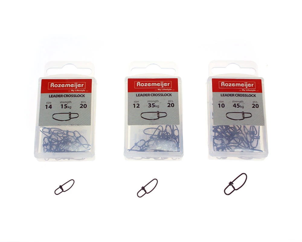 Top quality leader crosslocks. Available in tensile strengths 15, 35 and 45 kg. Play it safe, and take them from Rozemeijer. They don’t disappoint anyone! 20 pieces in a handy storage box.