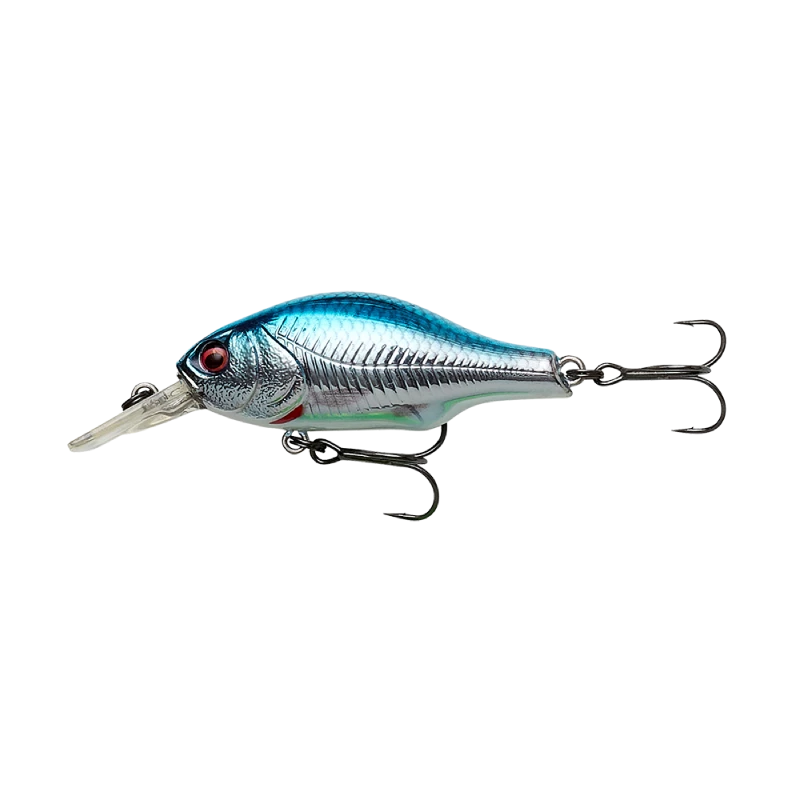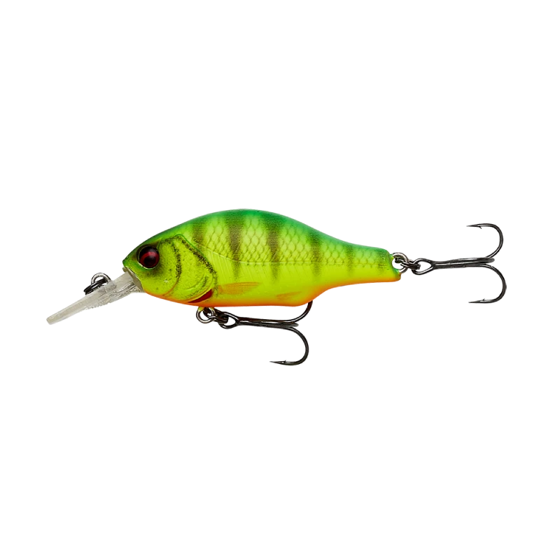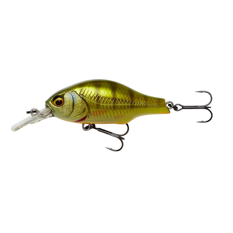 Super detailed Crankbait, with superb details. Square bill, medium runner, with a high arched Back, moving a lot of water on retrieve, great wobbling, wide action, with high buoyancy, moving up in the water on spin stop. Built in tubular rattle chamber, that sends out a loud and characteristic sound. The magnetic long cast system, with a sliding iron core, makes far and precise casting super easy. Great lure for Perch, Pike, trout, Zander, Asp and Bass.