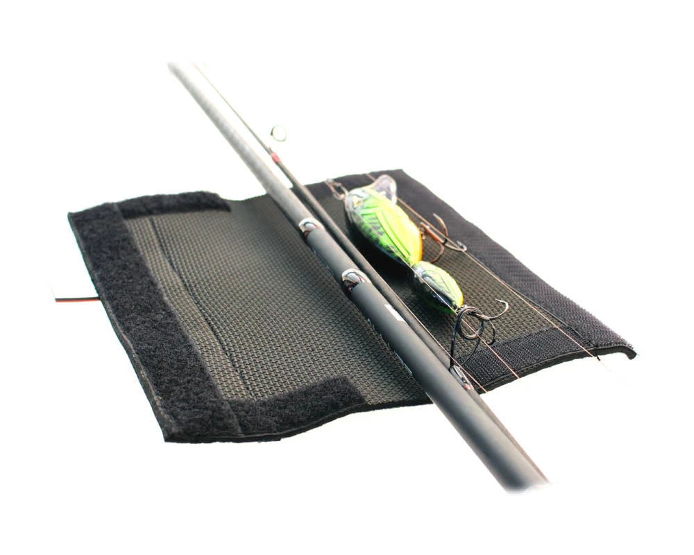 Quickly move to that other spot, either by bike, car or boat . For the ‘convenience’ Let that catchy piece of lure hang for a while. Before you know it, the treble hooks are swinging around your ears or the treble points incl. Barb will shoot into your expensive car or boat upholstery. That is pulling to get it out again, often resulting in damage. That won’t be the case if you ‘wrap’ that piece of lure ” with this neoprene Lure& Rod Band. You fold these over your fishing rod and lures so that the treble hooks are protected and cannot cause damage. Available in 2 sizes to shield every piece of lure; 25cm x 10cm and 22cm x 35cm.