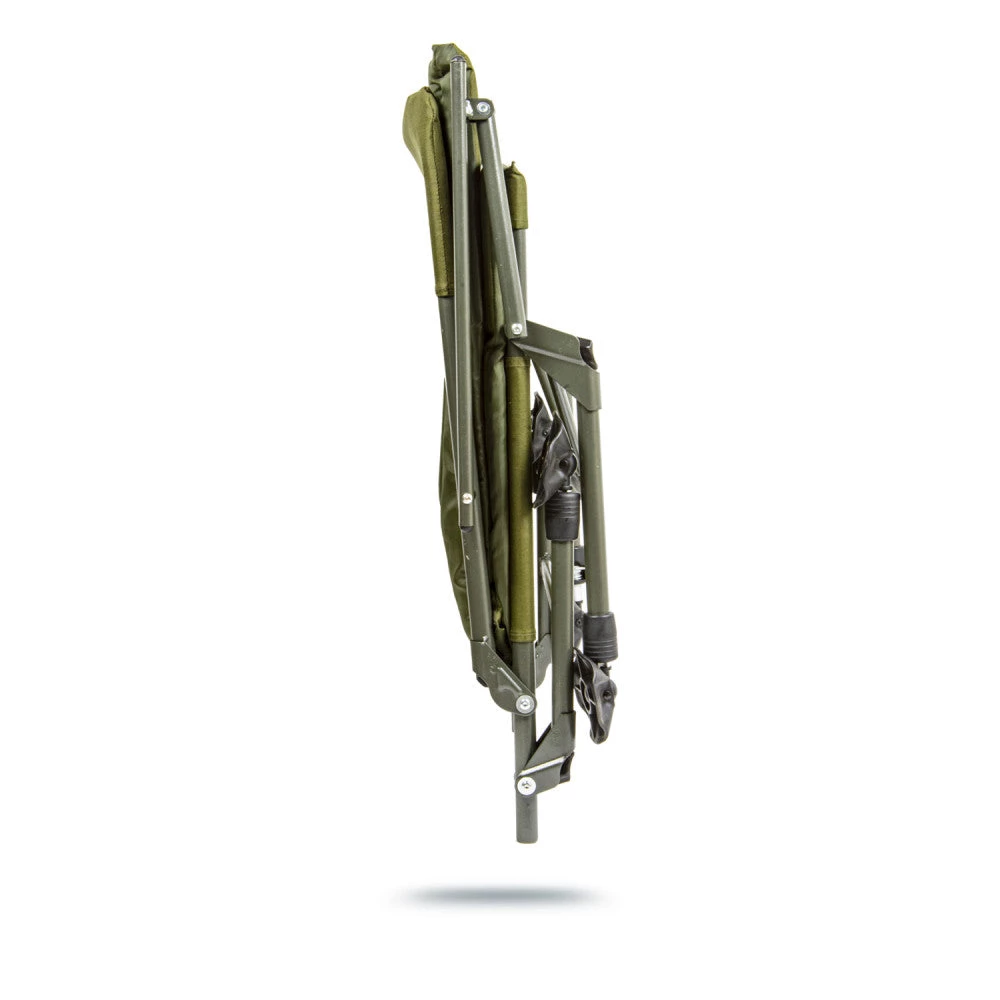 Light enough for the roving angler, the C-CLass arm chair features extendable legs and the self leveling mud feet mean the chair can sit level or inclined backwards, whichever you prefer. Plus, the legs boast our HingeLoc to ensure the chair wont collapse underneath you. The upholstery is luxurious, richly padded, surrounded by our green Armour, being water resistant and highly durable.