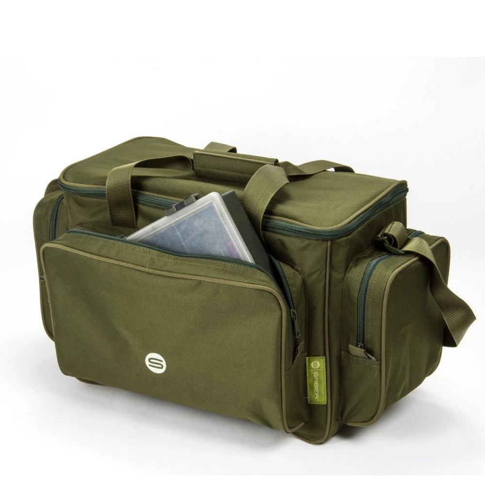 Due to demand, we’ve brought out our DPM Medium Carryall on olive green with a complete zip-open top making access to the voluminous main compartment easier. Free standing, fully padded giving generous protection to your gear and deeper than average external pockets for easy access to any tackle boxes etc. A hard wearing, reinforced base is incorporated to withstand the most rugged terrain.