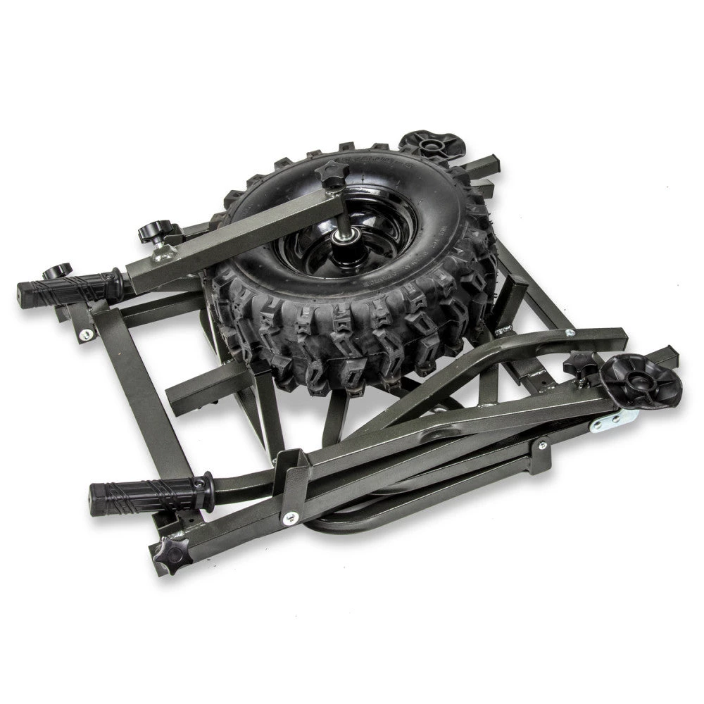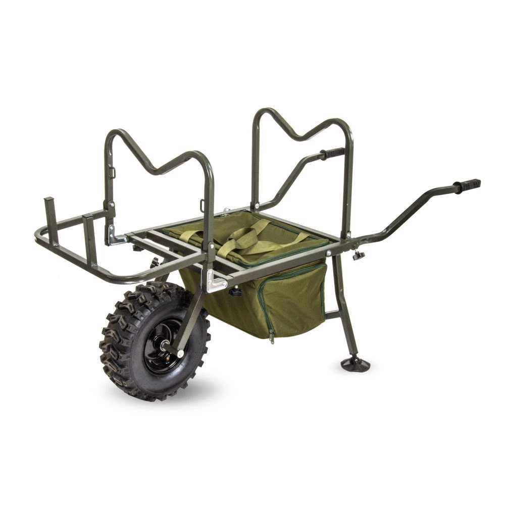 The Terrain features an extending front rack which enables you to stretch the load carrying capacity of the main chassis. Plus, the rack is purpose built to house your bedchair vertically in front of the wheels, meaning the Terrain balances well for effortless transit. The extending rack is bolstered by a sliding support bar, which accommodate awkward loads and eliminates rubbing on the wheel.