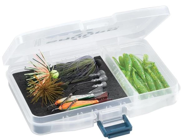- Clear Tackle box with up to two adjustable compartments