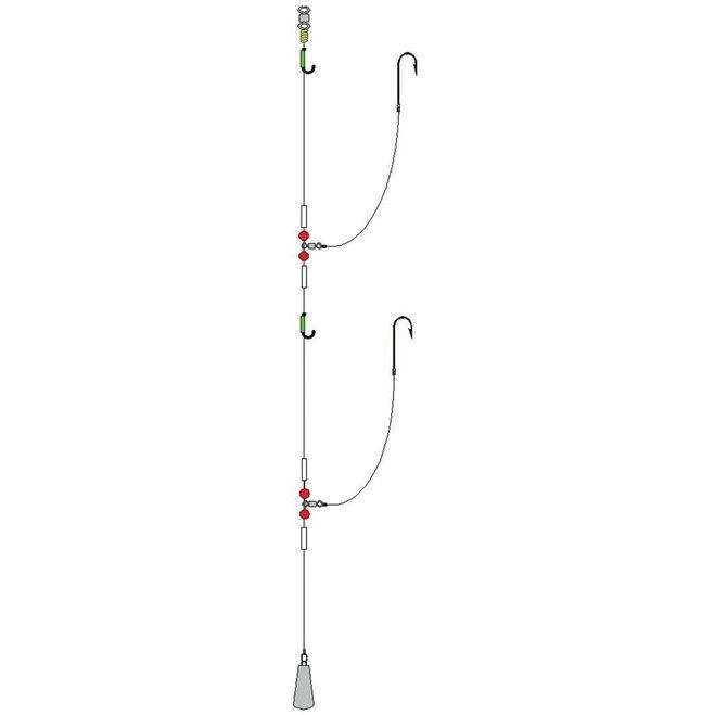 Designed with the two baits clipped-up to achieve maximum casting distance, but instantly release when the rig hits the sea. Allows two different baits to be fished close together to target a wider variety of species.