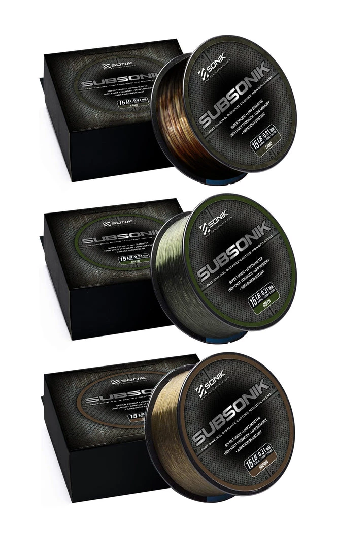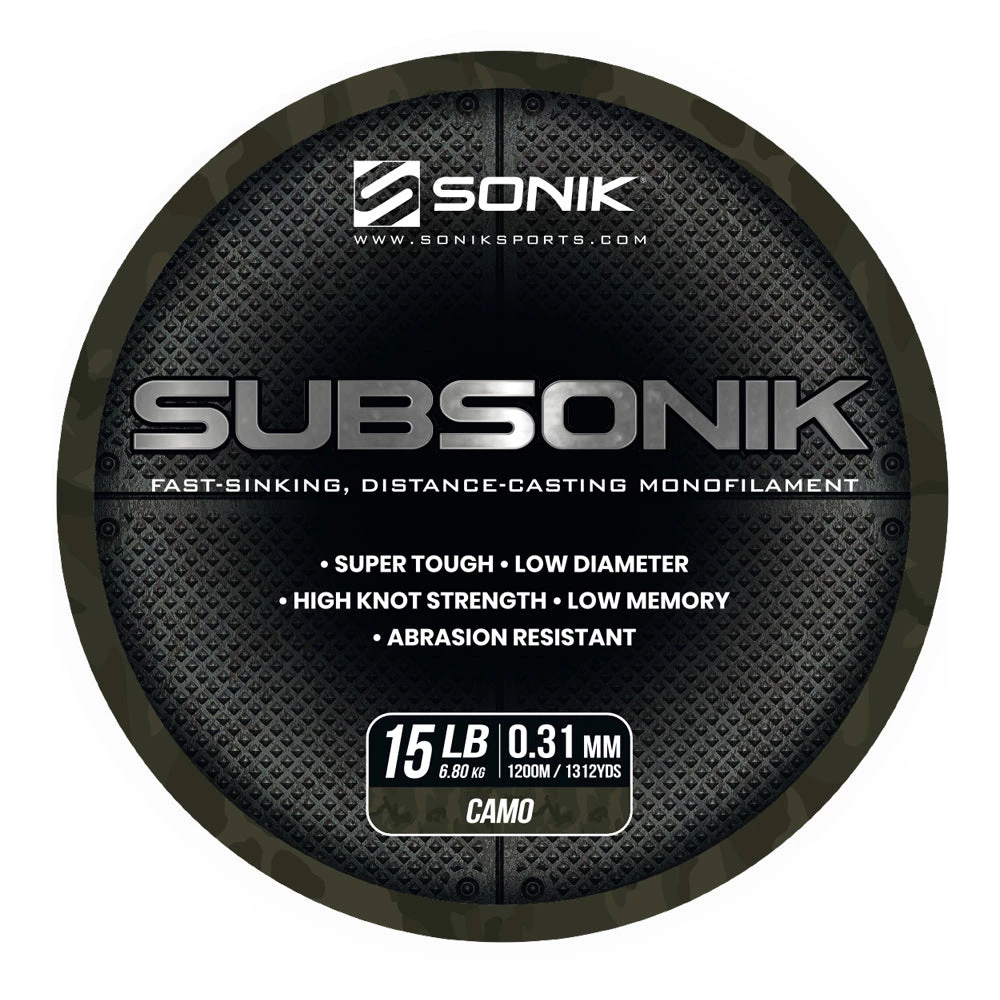 SUBSONIK is a super-smooth, hi-tech monofilament, which has been designed for the carp angler who demands the very best. It has been formulated using a complex extruding process which ensures maximum strength with a limited stretch factor and is designed to sink quickly, eliminating detection.