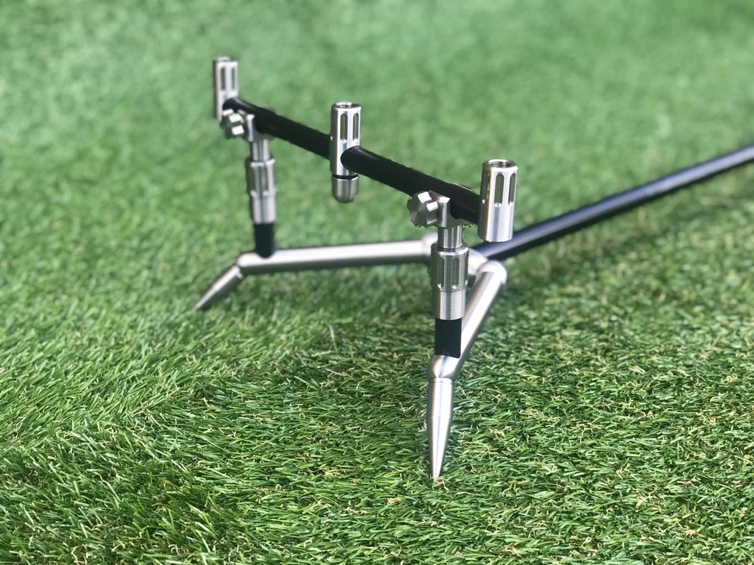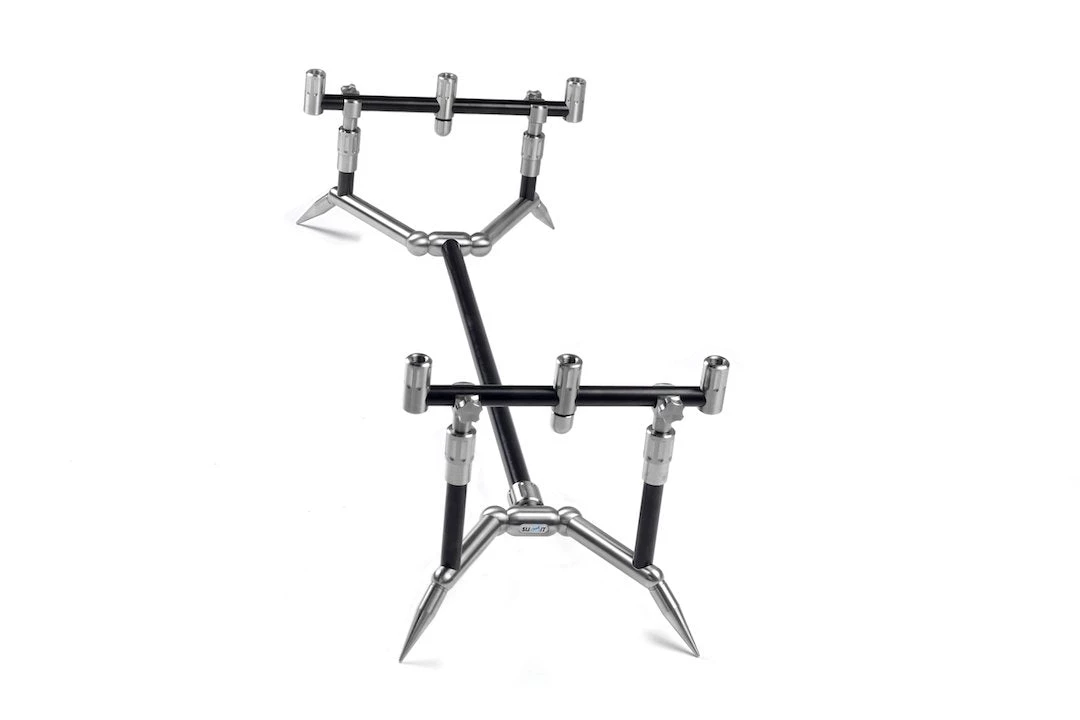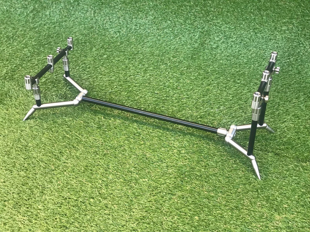 Using mini points and our new low-profile pod uprights giving a total adjustment of 60mm that will give you tips up or tips down depending on where you put the pod uprights back or front. Plus, you can extend or retract the pod length, with our twist lock central bar to extend or retract as is required by the angler.