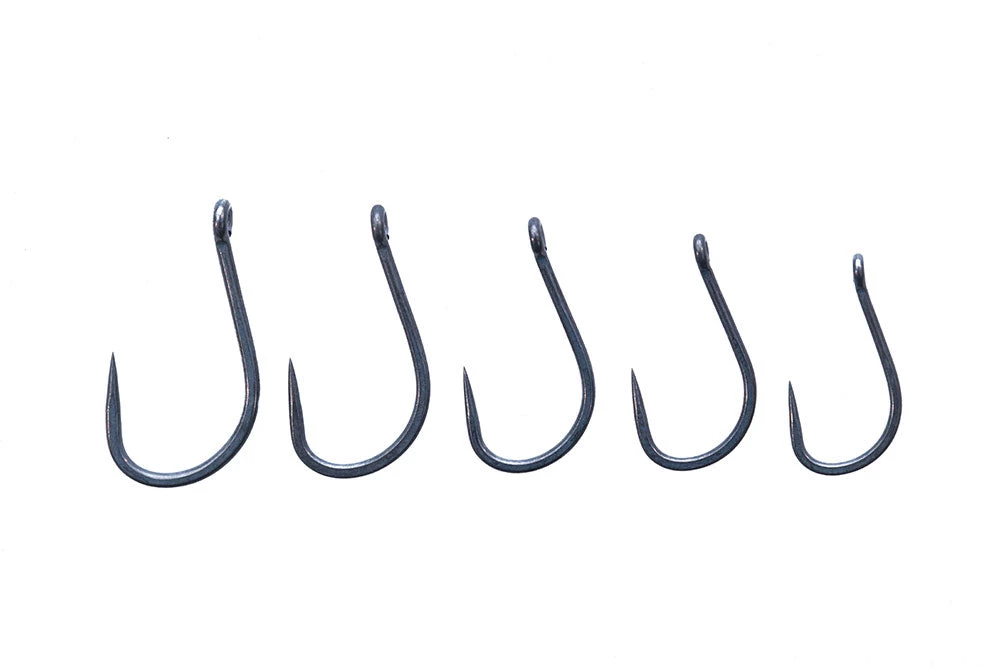 Bench tests on initial samples proved to us that the new tempering processes combined with improved designs and heavy forging resulted in hooks that were 25-30% stronger than other Tufflon coated carp hooks in the same wire gauge. So rather than having to improve strength by simply increasing wire gauge, new manufacturing processes have allowed us to maintain optimum wire gauges for each size which allow for fine, ultra-sharp needle points which are now more durable than ever.