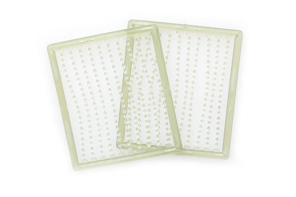 Having miniature tapered ends, they feed easily into the smallest hair loop, even one which is wet and has stayed closed. The narrow-waisted middle provides a secure seat for the loop and the miniature dumbbell shape holds the stop firmly in place.