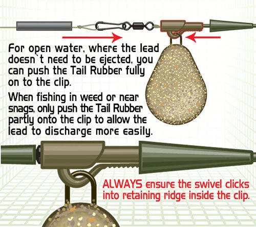 - During the design phase and then testing it became apparent that having a ribbed lead retaining arm combined with a smooth barrel (for the Tail Rubber to sit on) actually allowed anglers to precisely fine tune the pressure/force required to eject the lead from the clip.
